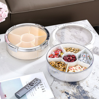 OWNSWING מגש הגשה עגול מחולק עם מכסים מיכל קופסת חטיפים 6 תאים ללא BPA ממתקים אגוזים חטיף מסיבת מתאבן מגש